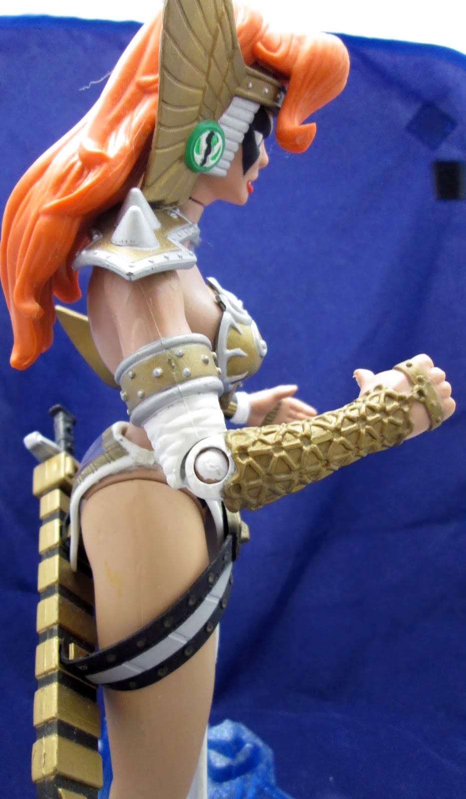 Her outfit has always consisted of a large amount of bare skin and a few bits of impractical armor, and that aesthetic is certainly maintained in this figure! What's perhaps more impressive is how well the figure captures Todd McFarlane signature style for drawing hair. That huge forelock is replicated perfectly, as well as the thick mane falling down past her shoulders.